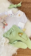 Com manguinha curta, tecido extra macio e fresquinho, garante conforto e modernidade para o seu bebê, sem abrir mão da delicadeza.