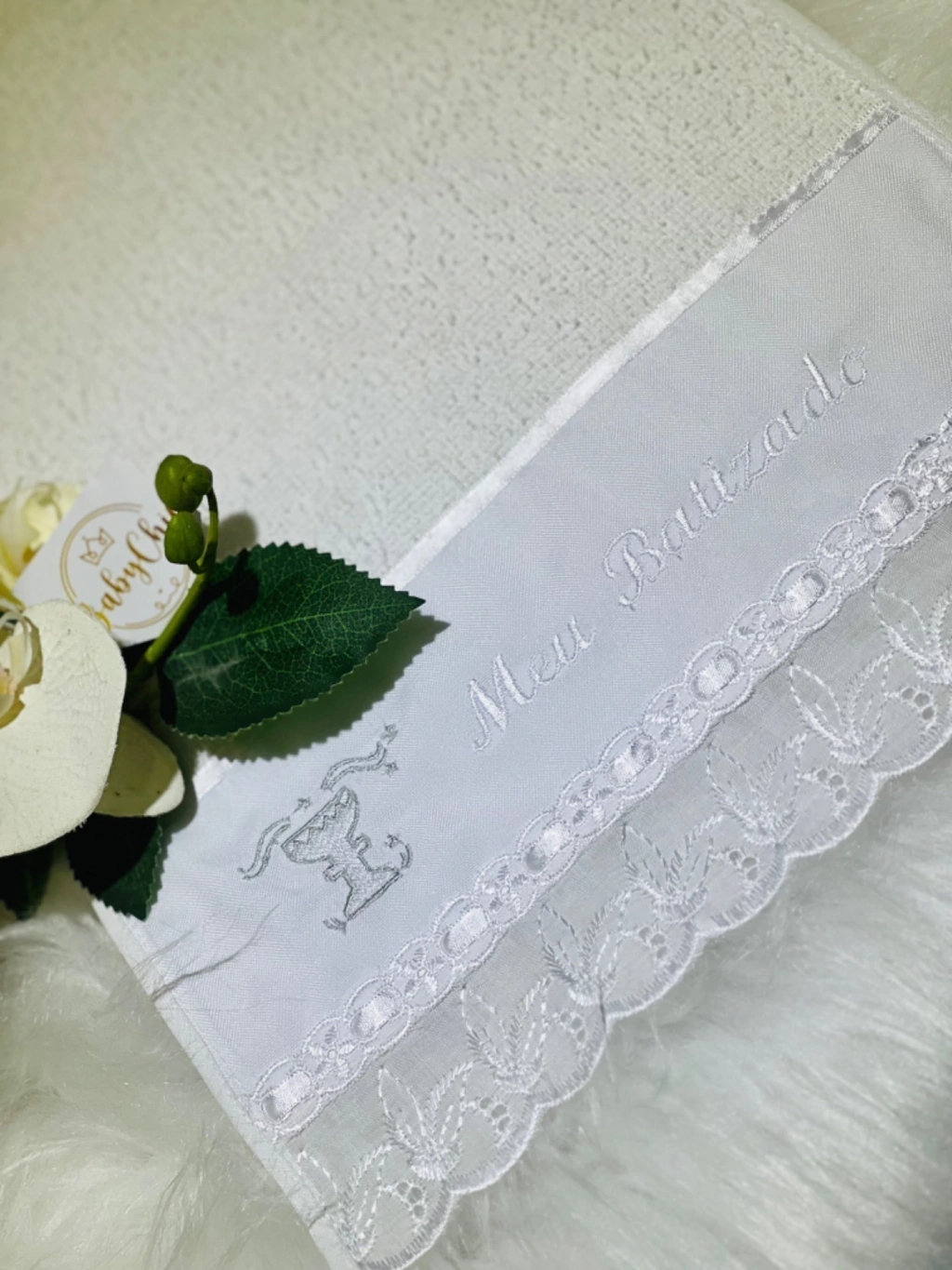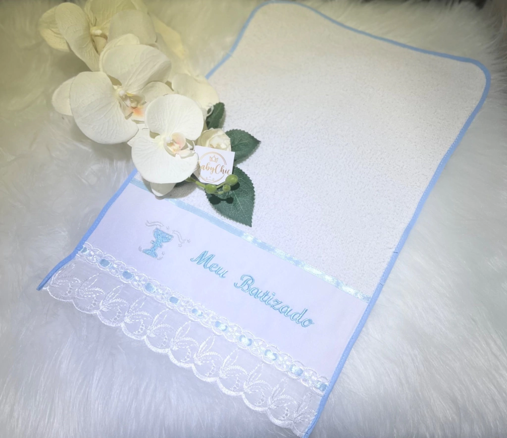 O Paninho de Boca Meu Primeiro Batizado é a escolha ideal para um momento tão especial e único. Confeccionado em malha de toalha hipoalergênica, proporciona maciez, conforto e delicadeza, trazendo um toque de sofisticação para o dia do batizado.