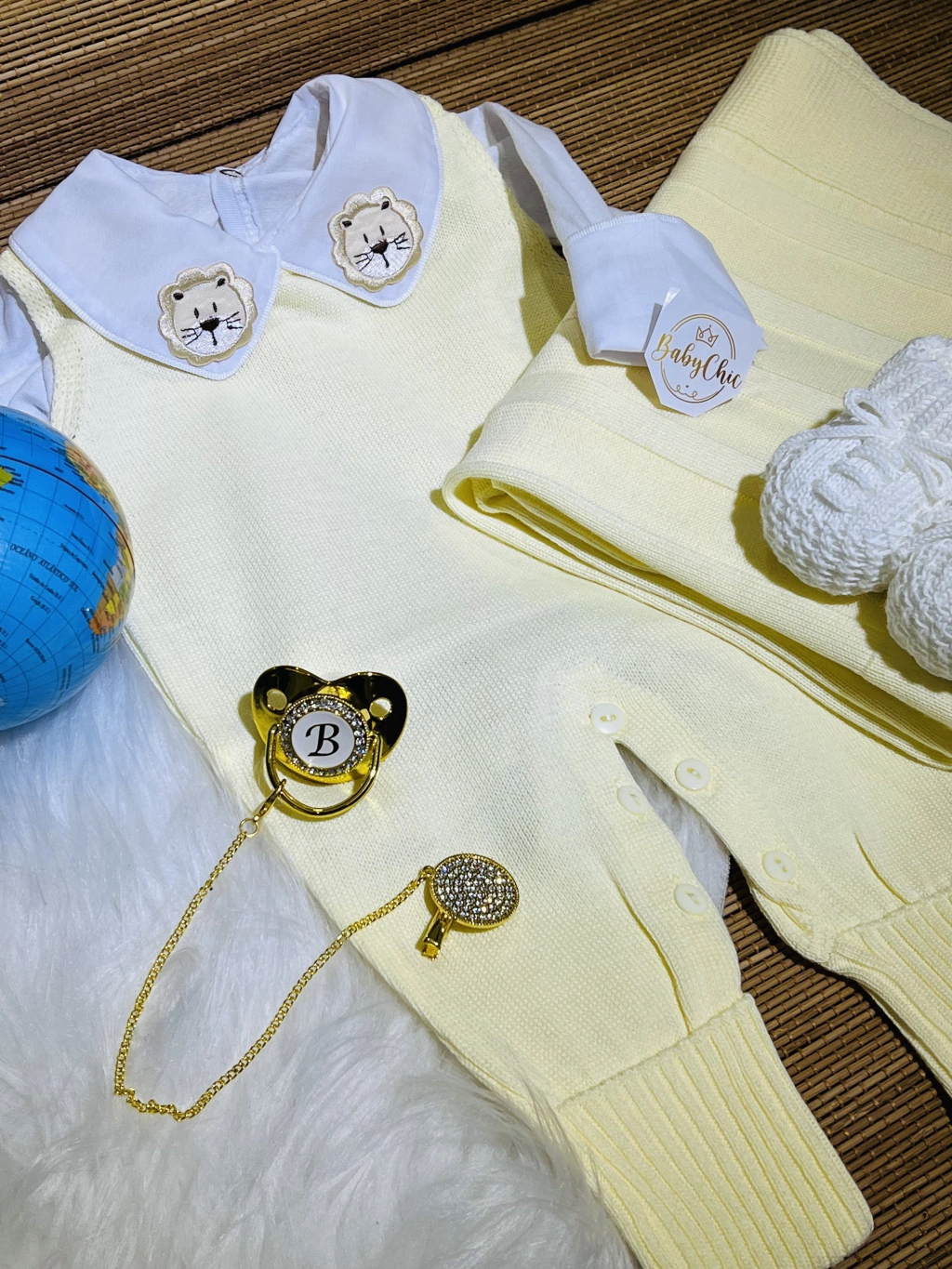 Kit completo para a saída da maternidade, que pode ser usado também em outras ocasiões especiais.