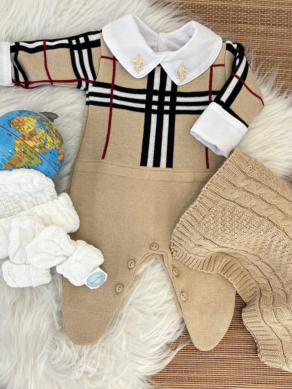 A Saída Maternidade Shales foi desenvolvida para trazer estilo clássico, conforto e proteção, tudo que seu príncipe merece nos primeiros dias de vida. Feita em tricô hipoalergênico, ela combina sofisticação com praticidade, sendo perfeita para esse momento tão especial.